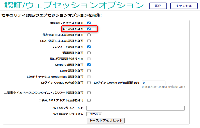 「OS認証を許可」にチェックを入れて、「保存」ボタンから設定を保存します。