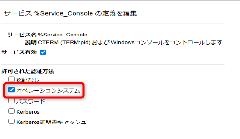 管理ポータルを起動し、[システム管理] > [セキュリティ] > [サービス]より「%Service_Console」をクリック