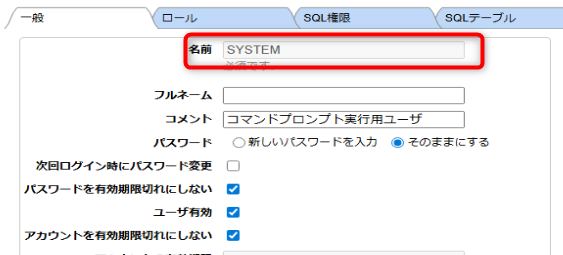 ユーザの名前は大文字の「SYSTEM」です。