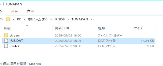 s dir = "D:\IRISDB\TUNAKAN" // 配置先は任意