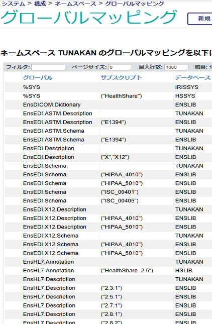 IRIS for Healthのインスタンスでネームスペースを作成した時、3種のマッピング「グローバル」「ルーチン」「パッケージ」に大量のマッピングが設定されています。