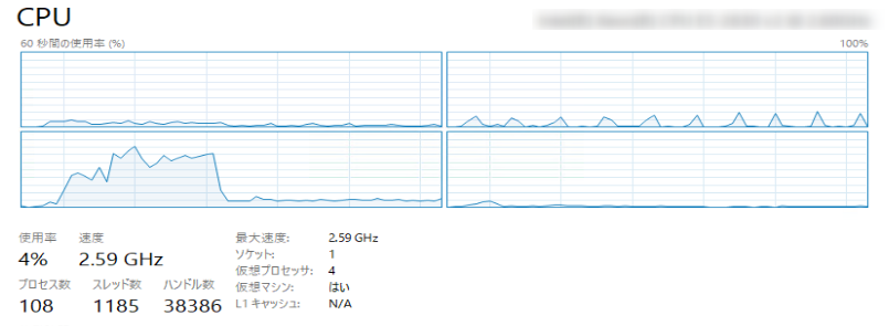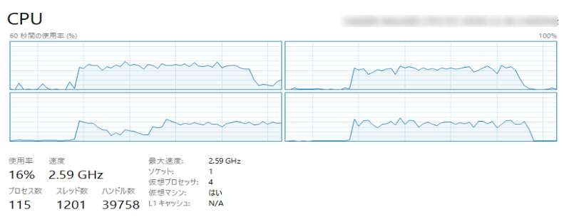 ワーカ・ジョブ4つ使用しているので、CPU負荷も相応に上昇しているはずです。
