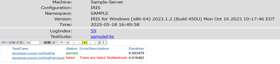 次は、「成功」したテストケース「developer.export.UnitTestFile」をクリックします。