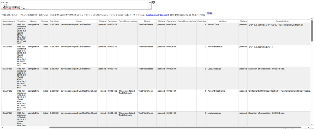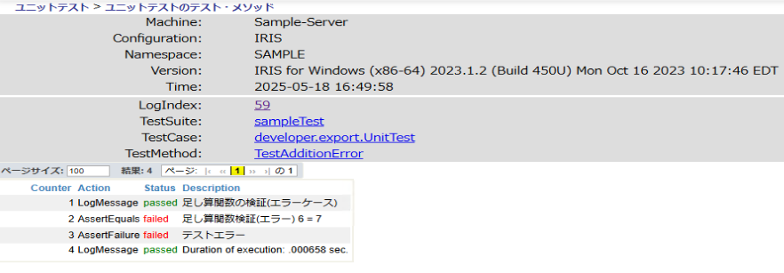 i.id=[LogIndex] // TestInstanceのレコードIDを指定します実行するとこんな感じで表示されます。