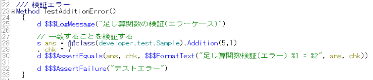 グリッドの列「Counter=1」は、関数 25行目のコメント「$$$LogMessage」を指しています、「Counter=3」は32行目のコメント「$$$AssertFailure」になります。