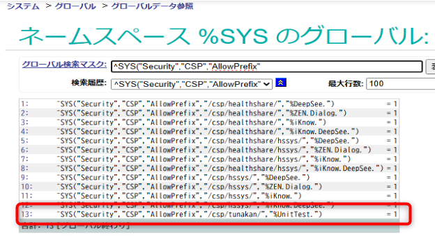 s ^SYS("Security", "CSP", "AllowPrefix", [ウェブアプリケーションパス], "%UnitTest.")=1■[ウェブアプリケーションパス]の設定値