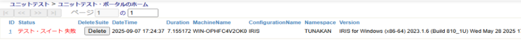 この画面では、今まで行ってきたユニットテストの一覧が表示され、前回の記事で行ったユニットテストもここから確認する事ができます。