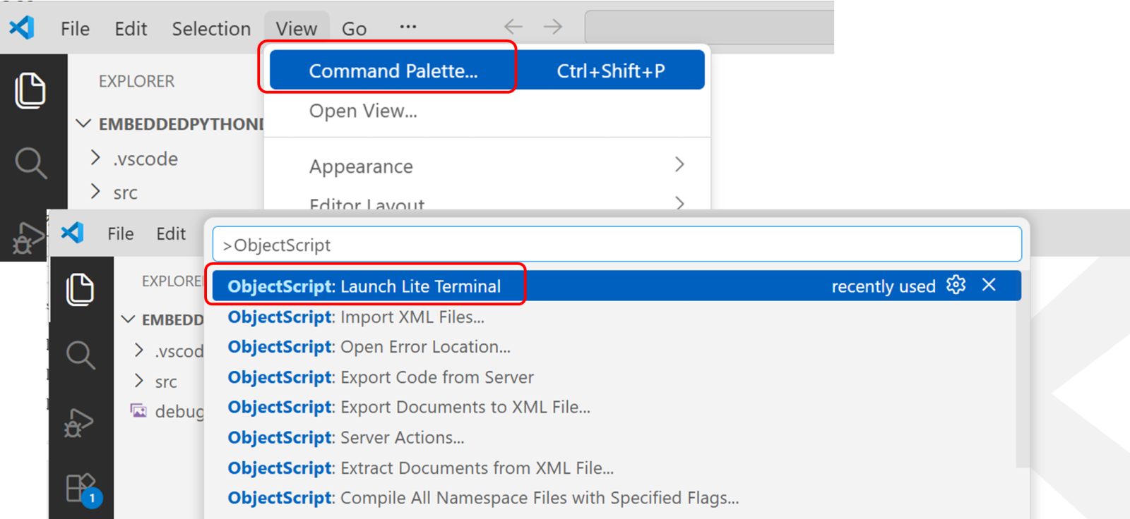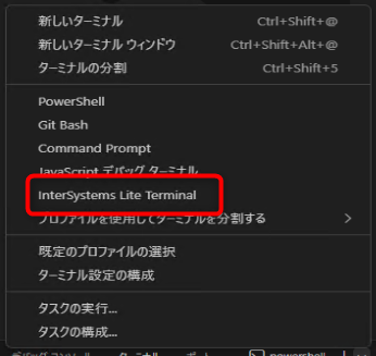 クリックするとメニューが開くので、「InterSystems Lite Terminal」を選択します。